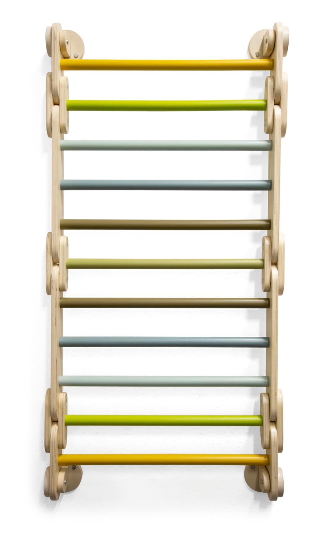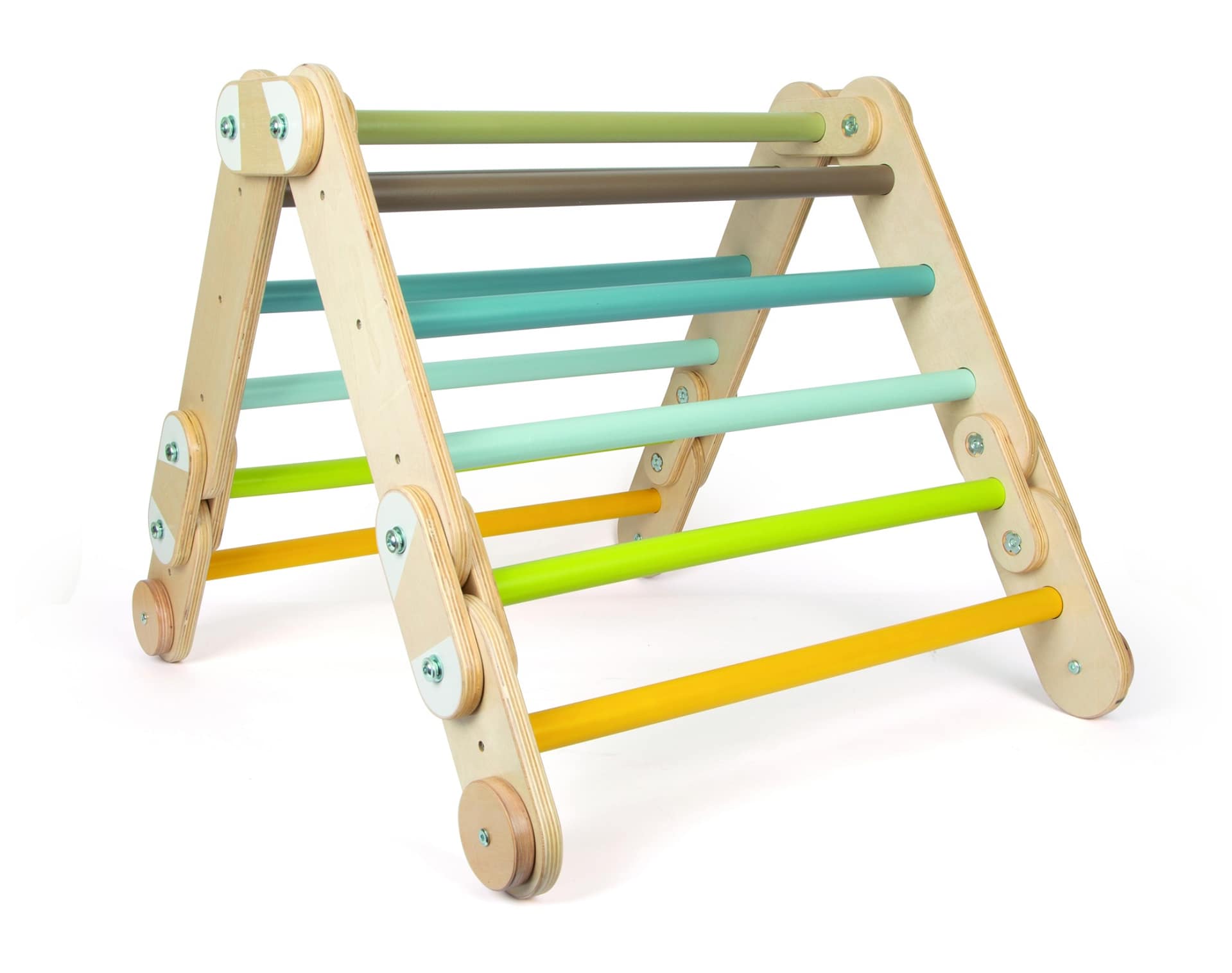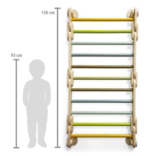 Klatretrekanten er fremstillet af robust træ i høj kvalitet og leveres med et justerbart beslag, som gør det muligt at tilpasse sværhedsgraden efter barnets alder, erfaring og mod. Det betyder, at legetøjet kan vokse med barnet og bruges i mange år. Overfladerne er glatte og behagelige at røre ved, så barnet kan klatre sikkert og komfortabelt.