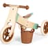 Det starter som en trehjulet cykel og bliver derefter til en løbecykel! Denne letvægts begynder-trehjuler i træ vokser perfekt med barnet takket være det højdejusterbare sæde med tre indstillinger for sædeafstanden! Den sikre trehjulede konfiguration med to baghjul er ideel til nybegyndere, og når deres balance og færdigheder er tilstrækkelige, kan den nemt omdannes til en klassisk løbecykel! Styret med begrænset drejningsradius giver ekstra sikkerhed! Alle børnenes yndlingslegetøj og ting kan passe i styrets kurv. De gummibelagte håndtag, uforgængelige EVA Soft dæk og det polstrede sæde giver masser af kørekomfort. Fra en trehjulet cykel til en tohjulet løbecykel! Det er den perfekte træner til at lære at cykle uden støttehjul. Løbecykler og trehjulede cykler træner motorik, balance og koordination bedre end noget andet legetøj, og på en meget individuel måde! Stellet kan samles i to forskellige variationer. Kombinationen af naturligt træ, en moderne grøn farve og karamelfarvede detaljer gør denne multifunktionelle løbecykel til et sandt blikfang.