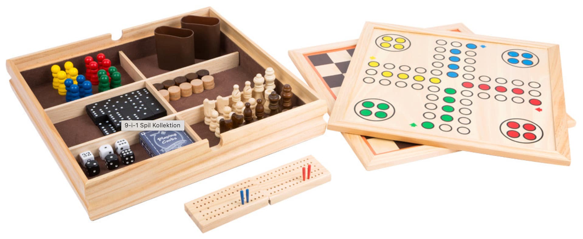 Sættet indeholder tidløse favoritter som skak, ludo, domino, mølle, backgammon, dam, cribbage og populære terningespil – kort sagt en komplet basispakke, som hører hjemme i enhver husstand. Her kan børn lære om tur-tagning, strategi, at vinde og at tabe, mens de samtidig træner koncentration og logisk tænkning. De mange forskellige spil giver mulighed for at udfordre sig selv på flere niveauer, og hele familien kan finde deres favoritter, uanset alder og erfaring.