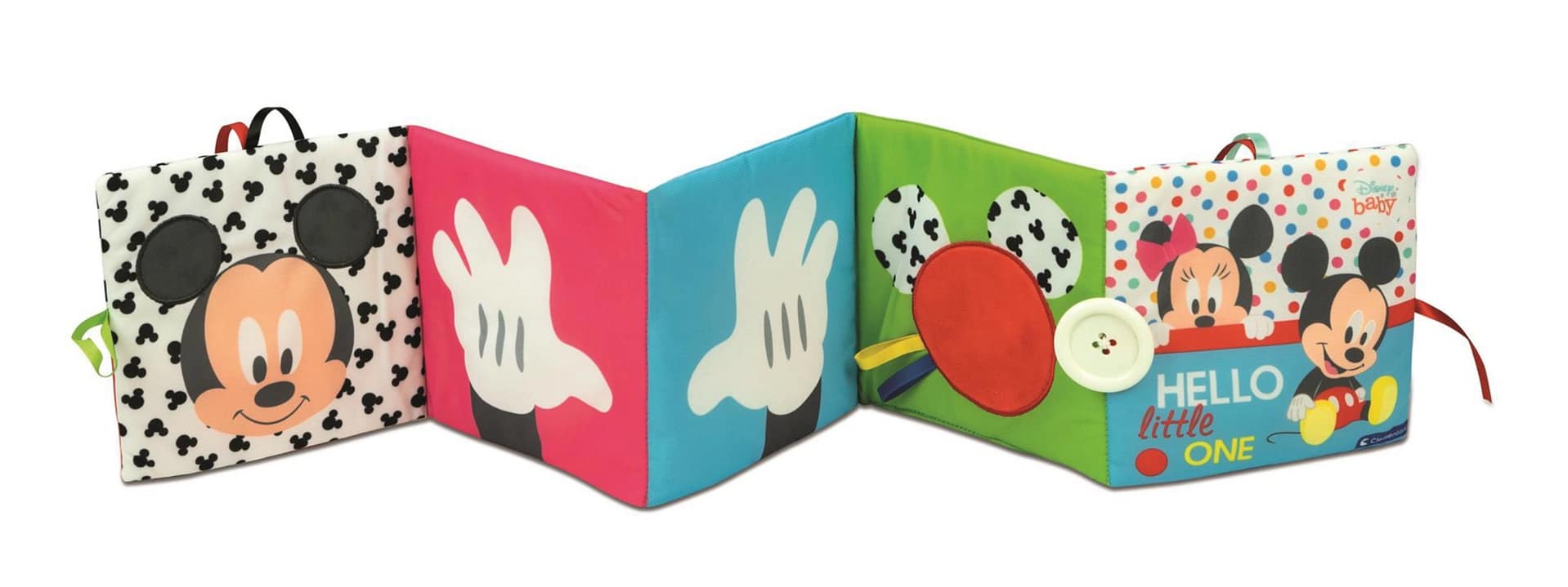 Baby Disney B&W Book er en blød aktivitetsbog med kontrasterende farver, knitrende dele, en piver og forskellige materialer, der stimulerer barnets sanser. Med billeder og aktiviteter med Mickey Mouse og Minnie Mouse er denne bog perfekt til at tage med på farten og kan nemt fastgøres til tremmesengen med de praktiske snore.