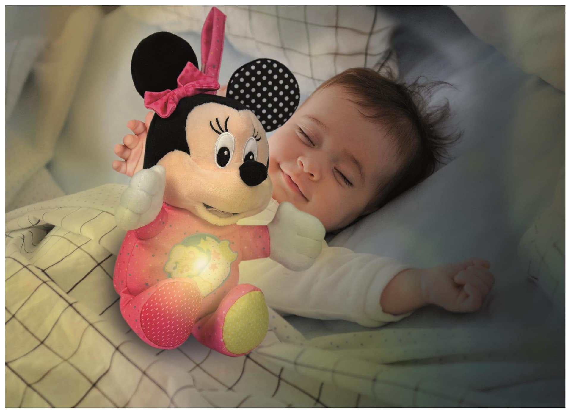 Denne søde lille Baby Minnie-bamse er den perfekte lurmakker for alle børn. Med sin oplyste mave luller denne bamse dit barn i søvn og skaber en behagelig følelse af tryghed hele natten. De blide melodier vil berolige dit barn og hjælpe dem med at falde i søvn.
