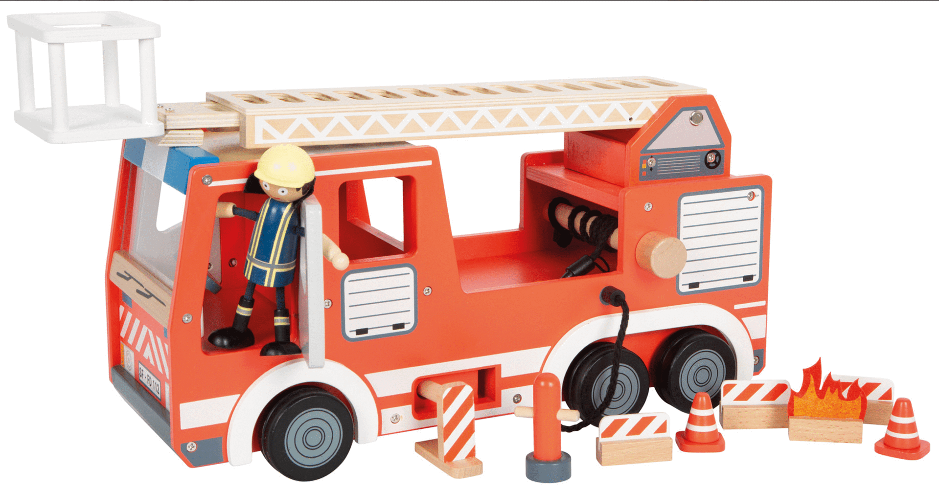 Brandbilens solide konstruktion gør den ideel til ivrig leg både inde og ude. Med sine klare farver, afrundede former og børnevenlige materialer er den sikker og behagelig at håndtere for små hænder. De realistiske detaljer – som stige, slanger eller nødlys (afhængigt af model) – giver børn mulighed for at leve sig helt ind i deres redningsopgaver.