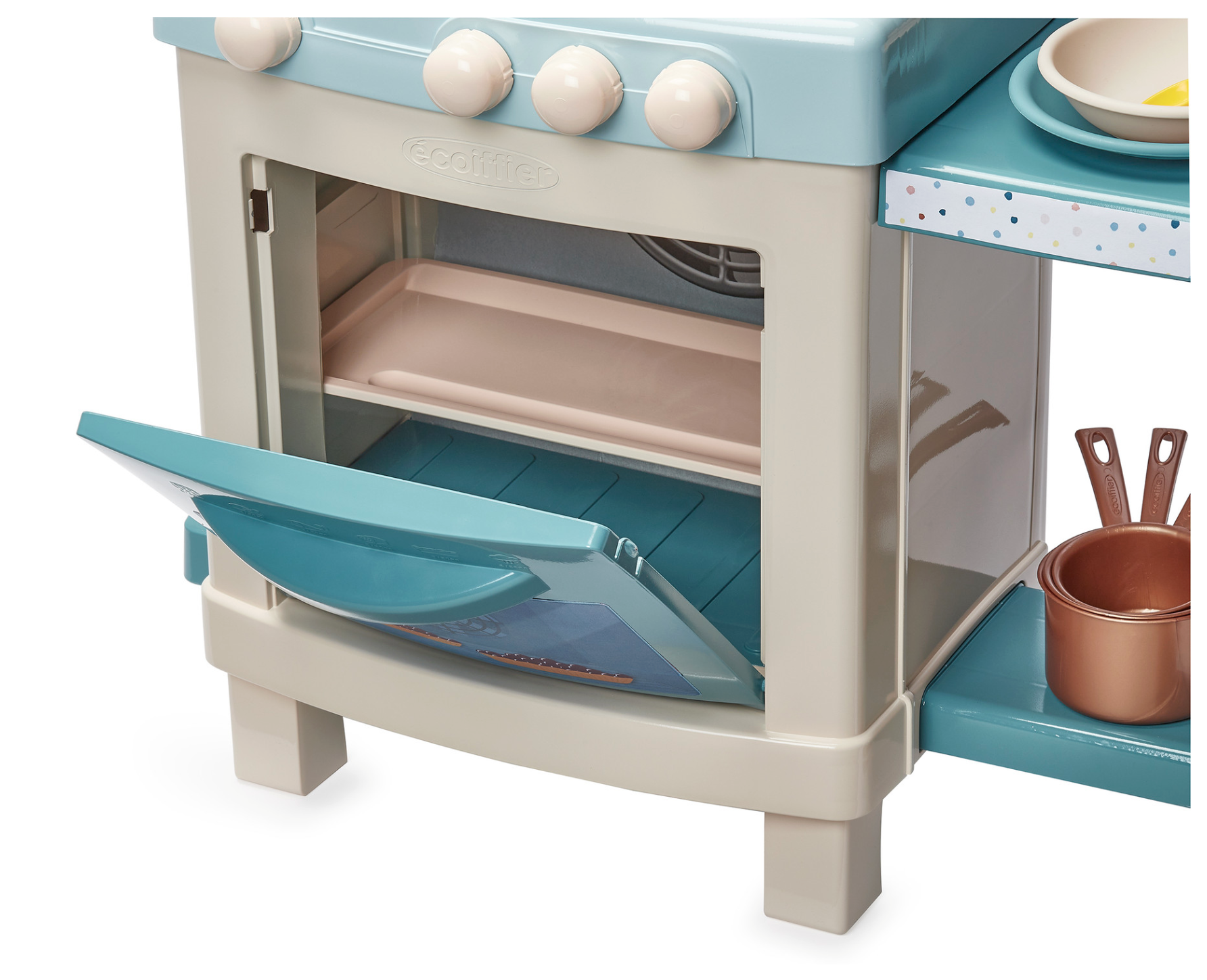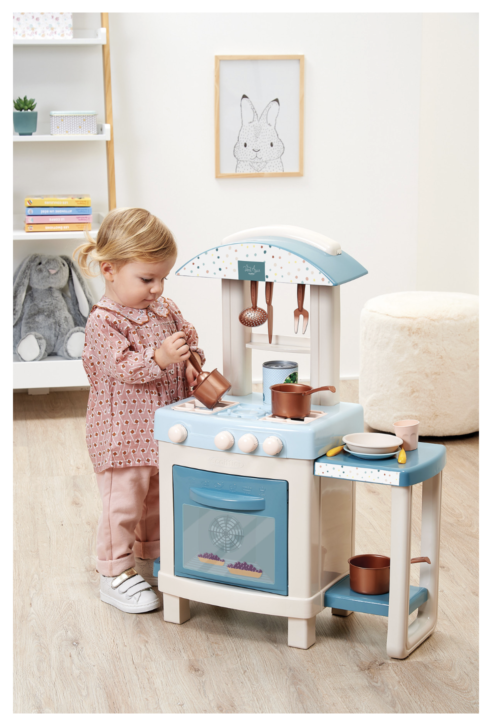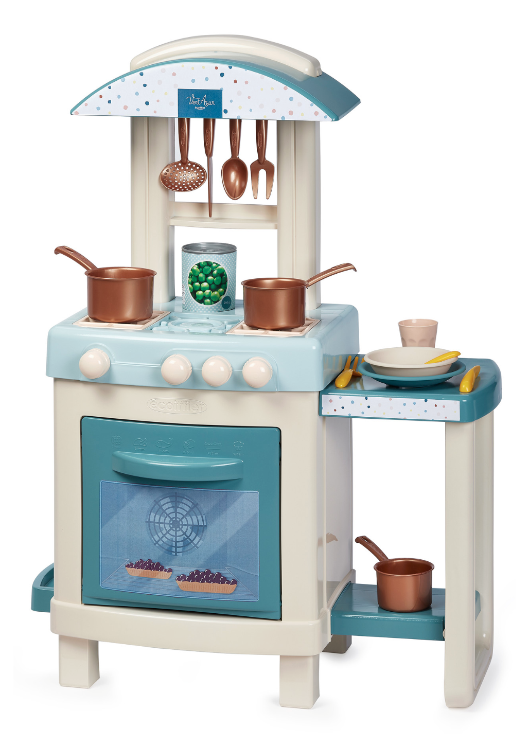 Dette stilfulde legekøkken giver børn mulighed for at udfolde deres fantasi som små kokke og skabe deres egne kulinariske oplevelser. Det indbydende design og de mange funktioner gør legen realistisk og engagerende.