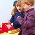 Et rubust rødt kasseapparat med bløde knapper, en pengeskuffe, der kan springe op, en træ bon samt papir og træpenge. Med legetøjs kasseapparatet er der lagt op til mange timers god leg.