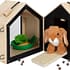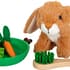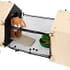 Et kaninbur til de bløde lang-ører! Dette dobbelthus, lavet af staldtræ, kan også bruges til transport og består af to små hytter, der forbindes via kugler og løkker. Den ene halvdel fungerer som soveområde for den udstoppede kanin med en magnetisk lukkende klapdør. På den anden side kan kaninen se sig omkring gennem en netindhegning. To hegn kan tilsluttes husene og skabe et udendørs indhegnet område. Medfølgende tilbehør inkluderer en plyskanin, børste, lille fad, gulerødder lavet af træ og filt, et stykke salat og kaninafføring lavet af filt.
