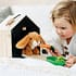 Kaninhuset er let at bære med det adskillelige greb, så det kan tages med til fantasifuld rolleleg. Udvidelsen af det ydre kabinet gør alle områder let tilgængelige for børn. Dette gør kaninhuset klar til realistisk leg. Huset er et godt alternativ for børn, der endnu ikke kan få et rigtigt kæledyr. Det styrker sociale og følelsesmæssige færdigheder gennem rolleleg. Kombinationen af naturligt træmateriale og en skrivebar overflade gør huset til et flot element i børneværelset!