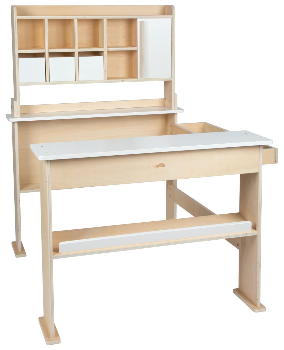 Butikken er lavet i en solid trækvalitet, der sikrer stabilitet og lang holdbarhed, selv når legen bliver intens. De mange opbevaringsmuligheder, hylder og udstillingsflader giver børn frihed til at organisere sortimentet, som de vil, og ændre opsætningen igen og igen. Mange børn elsker at “scanne” varer, lave små rollespil og efterligne voksne – og denne butik giver dem alle muligheder for det.