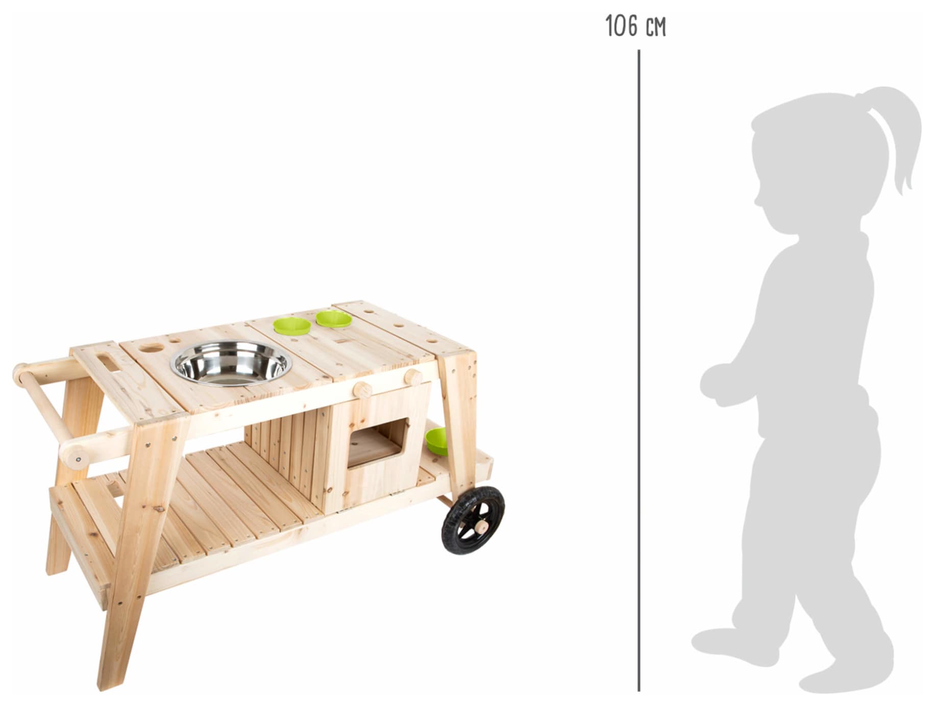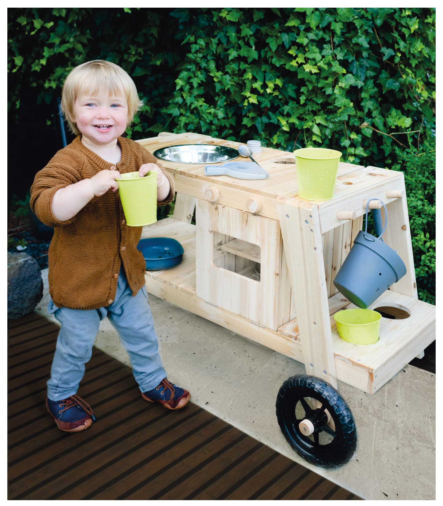 Mudderkøkken (Flytbar) er et fleksibelt og sjovt udekøkken til børn, der elsker at lege og udforske naturen. Med sin robuste konstruktion og flytbare design kan det nemt placeres i haven, på terrassen eller i børnehaven. Integrerede hylder og arbejdsflader giver masser af plads til kreative lege, mens det vejrbestandige materiale sikrer lang holdbarhed. Mudderkøkken (Flytbar) er den perfekte løsning til timevis af fantasifuld leg og læring i det fri.