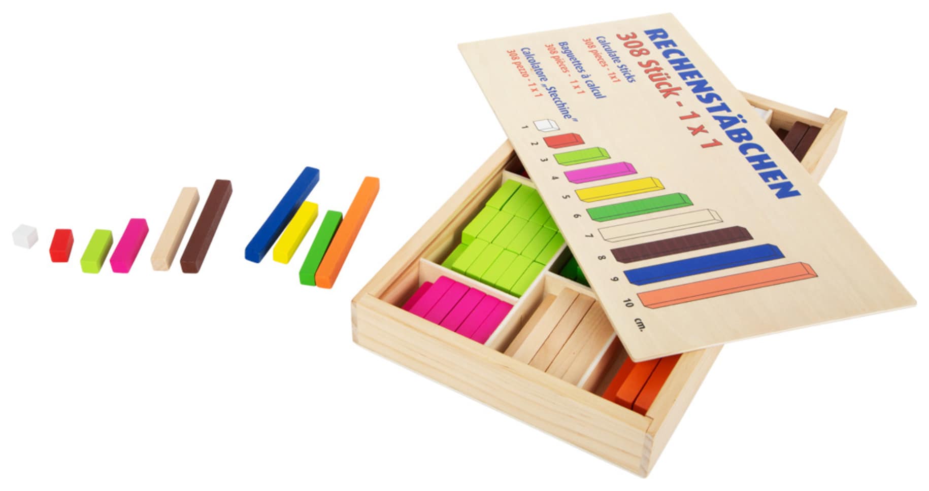 Er ti større end tre? Disse alsidige matematikpinde vil give børn en første forståelse af tal og hurtigt og illustrativt støtte dem med deres første forsøg på matematiske ligninger. De forskellige længder af pindene fungerer som orienteringshjælp. Børn i førskolealderen vil få grundlæggende matematiske færdigheder, når de tæller, sammenligner og sorterer pindene. Ældre skolebørn vil blive støttet med deres læring om plus, minus, dividere og gange. De ideelle ledsagere til matematikprofessionelle i alle aldre! Disse pinde træner fantasi og logisk tænkning, samtidig med at de giver en forståelse af størrelser og farver. Alle pindene kan sorteres og opbevares i den medfølgende kasse med skydelåg, når læringen er færdig. Dette læremiddel er den ideelle introduktion til talverdenen for børn i førskole- og skolealderen – og lang, intensiv legesjov med læringseffekt er garanteret!