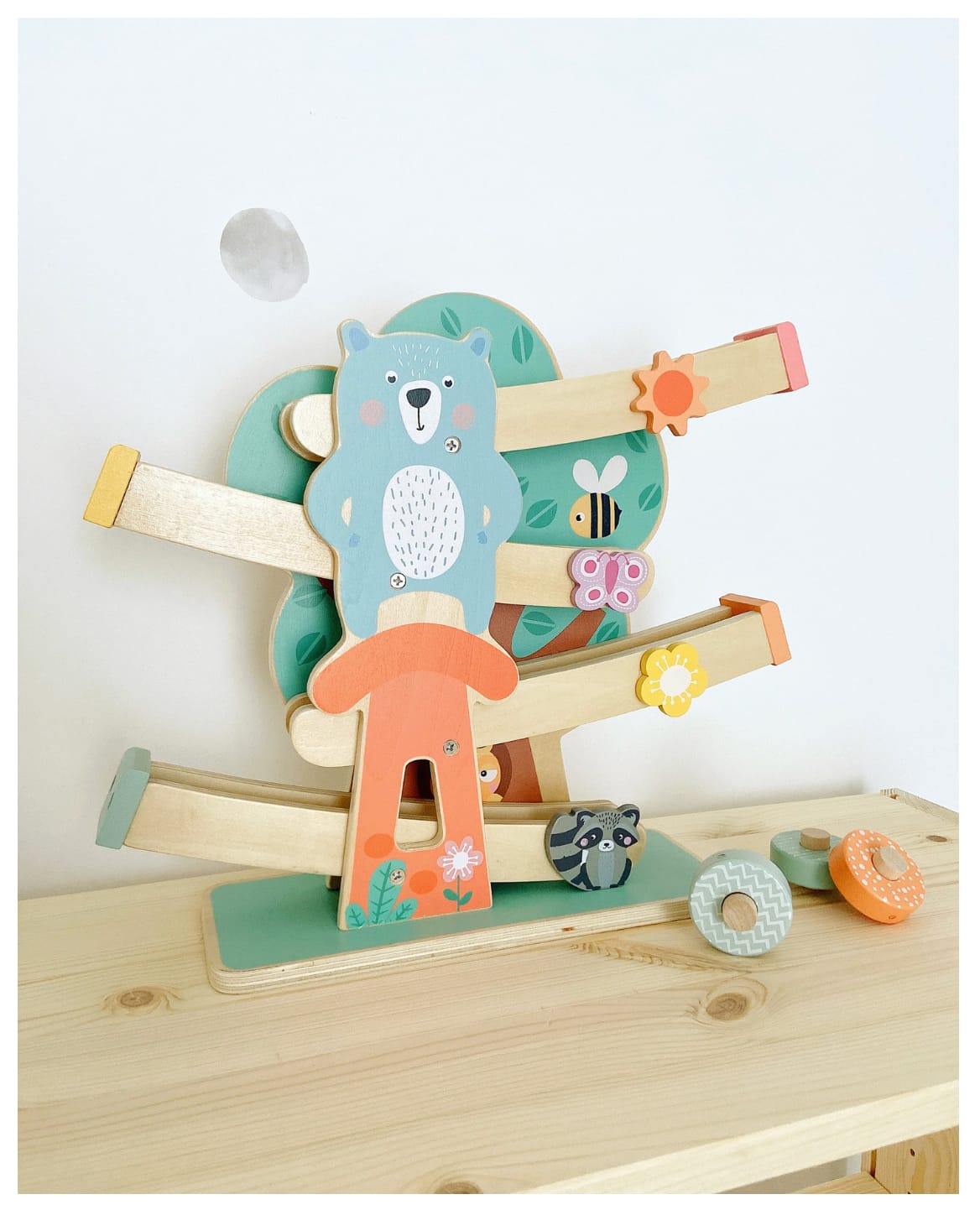 En charmerende og pædagogisk kuglebane, der forener æstetik, læring og bevægelsesglæde – perfekt til at berige hverdagen med små, magiske øjeblikke.