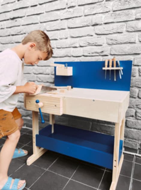 Værkstedsbænken er ideel til både solo-leg og samarbejde mellem søskende eller legekammerater. Den opfordrer til dialog, planlægning og teamwork, når børn sammen finder ud af, hvad de vil bygge. Samtidig giver den rig mulighed for fri fantasileg – måske bygger de en bil, en robot, et fuglehus eller en helt ny opfindelse.