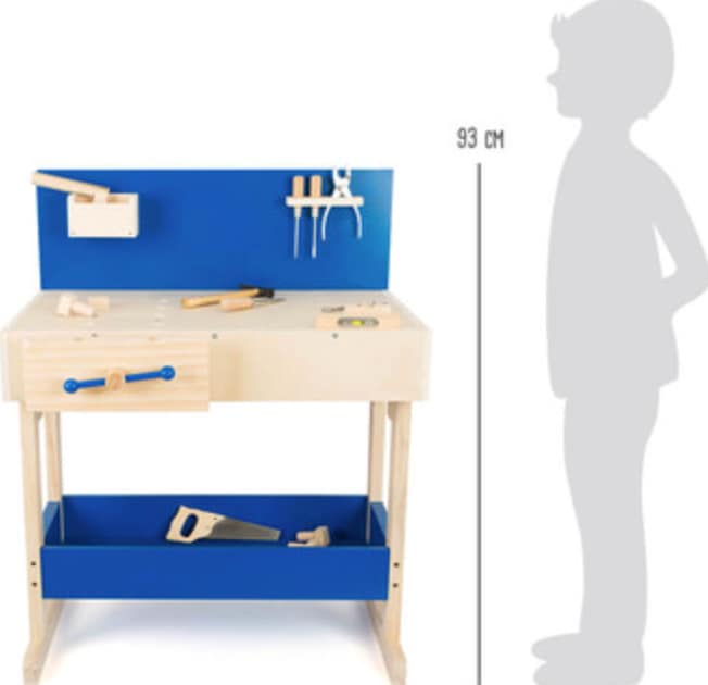 Med sit charmerende trædesign passer værkstedsbænken flot ind i hjemmet, samtidig med at den er robust nok til daglig brug. Et fantastisk valg til små bygherrer, der elsker at skabe, reparere og konstruere – og en gave, der kan inspirere mange års leg og læring.